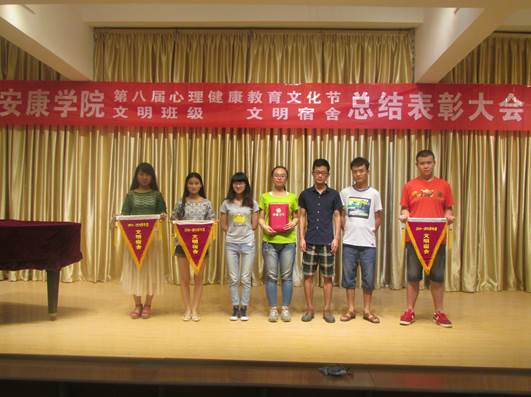 6月26日下午,yl6809永利官网在江北校区1401多功能厅举行了第八届大学生心理健康教育文化节暨文明班级、文明宿舍总结表彰大会。我系2013级数字媒体与技术班获得“yl6809永利官网2014—2015学年文明班级”的荣誉称号,同时我系5—422、5—427、5—435、9—201、9—229等5个宿舍荣获“2014—2015学年文明宿舍”的荣誉称号。