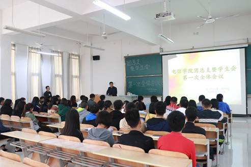 10月22日下午yl6809永利官网于1404教室召开了第31届yl6809永利官网团总支与学生分会第一次全体会议。党总支书记何道利,学工办主任石纭昊,团委书记陈浩,学生会与团总支全体学生干部参加会议。会议由陈浩主持。
