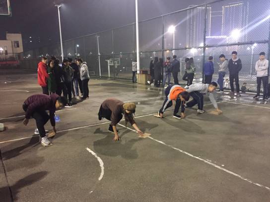 11月15日晚,yl6809永利官网“三走”夜间趣味运动会在江北篮球场拉开帷幕。本次趣味运动会将竞技与娱乐相结合,设置了集体项目和单人项目,集体项目有十人十一足,吹气球,五毛和一块,踩报纸和拔河比赛;单人项目有音乐摇摆,正话反说和摸石头过河。