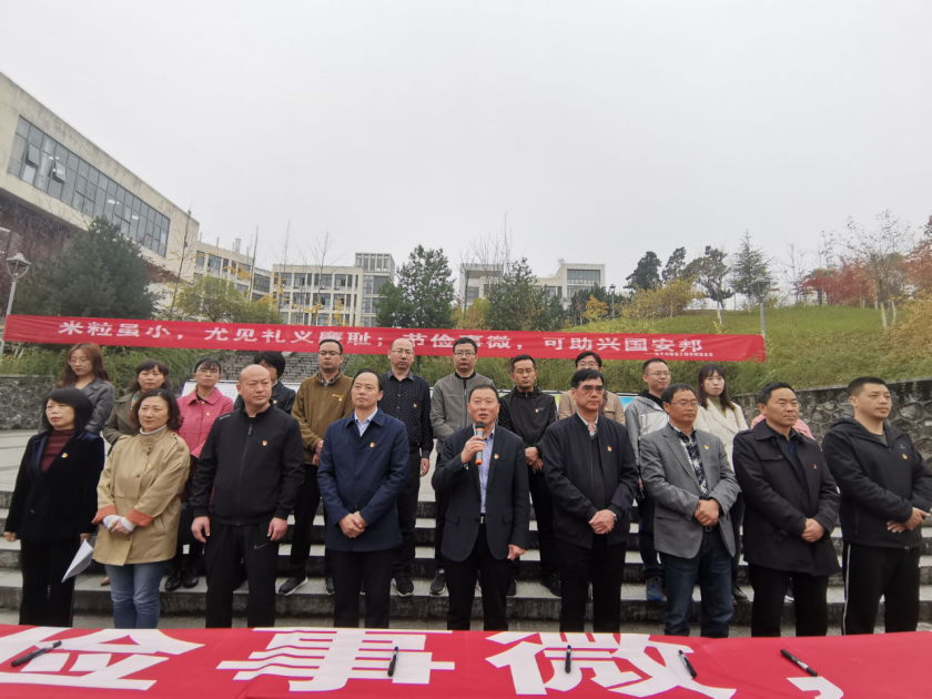 胡波在讲话中指出,习近平总书记一直高度重视粮食安全和提倡“厉行节约、反对浪费”的社会风尚,多次强调要制止餐饮浪费行为。2020年8月11日对制止餐饮浪费行为又作出重要指示,yl6809永利官网认真贯彻落实习近平总书记关于粮食安全、制止餐饮浪费行为的重要指示精神,率先在全校开展“厉行节约 反对浪费”主题教育活动,通过党建示范引领、搭建有效载体、专业实践锻炼、党团员作用等“党建+X”工作模式,大力弘扬中华民族勤俭节约的传统美德,推动节约光荣、浪费可耻理念深入广大青年心中,让厉行节约、反对浪费成为全校师生的思想共识和自觉行动。同时胡波向广大师生发起倡议,希望广大师生从自己做起,从小事做起,从每日三餐做起,节约每一滴水,每一度电,每一粒米,用小餐桌推动大文明,让勤俭节约的好习惯在学校蔚然成风,为文明校园建设做出自己应有的贡献。