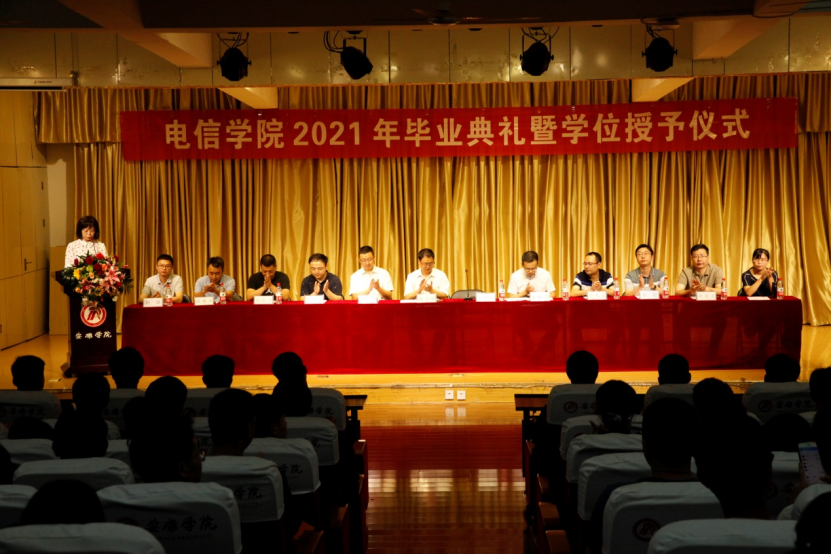接下来,2017级电本专业李颖作为毕业生代表发言,他分享了自己大学四年在学校的收获,倾诉了对母校的深深感激和不舍,表示自己时刻铭记“笃学、尚行、砺志、创新”的校训,传承安大精神,并代表全体学生为母校送上了最美好的祝愿。