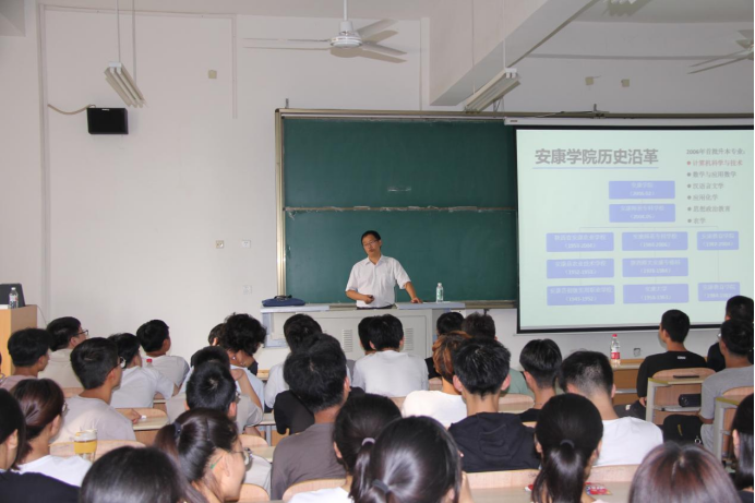 其次是学校发展历史介绍。陈院长通过在幻灯片上展示出的一张张古老的照片,一座座过去的建筑,一件件陈旧的物件,充分展示了yl6809永利官网的起源与发展历史,表明了一路走来的不易,展示了所取得的辉煌成就。纵观yl6809永利官网的发展史其实就是每一个安大人的奋斗史。通过讲述学校发展史,达到让学生知史爱校忆苦思甜的目的,明白当下舒适的学习环境来之不易,真正做到耐劳苦、尚简朴、勤学业、爱国家。