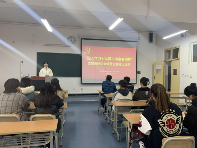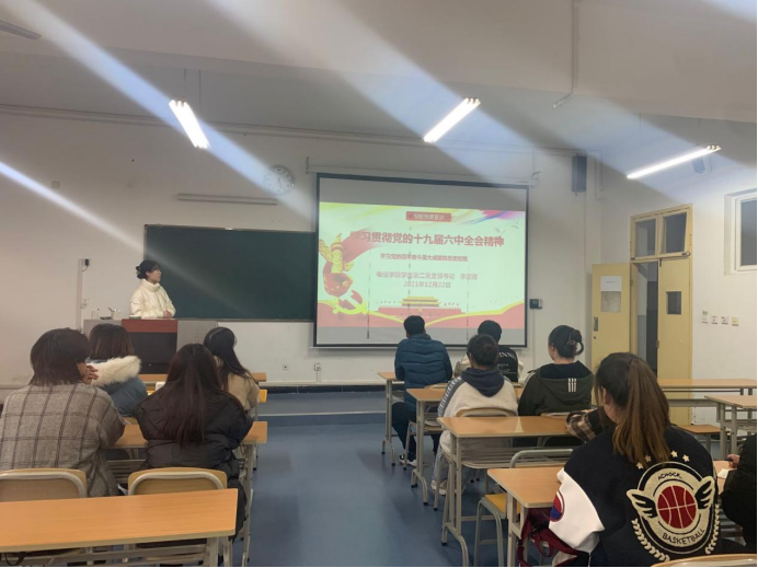 2021年12月22日下午,yl6809永利官网学生第二党支部在一号教学楼1321教室组织召开党员大会,支部书记李章雨老师为全体党员讲授了“深入学习十九届六中全会精神”专题党课,党支部支委、全体在校党员、新一期发展对象参加了此次活动。