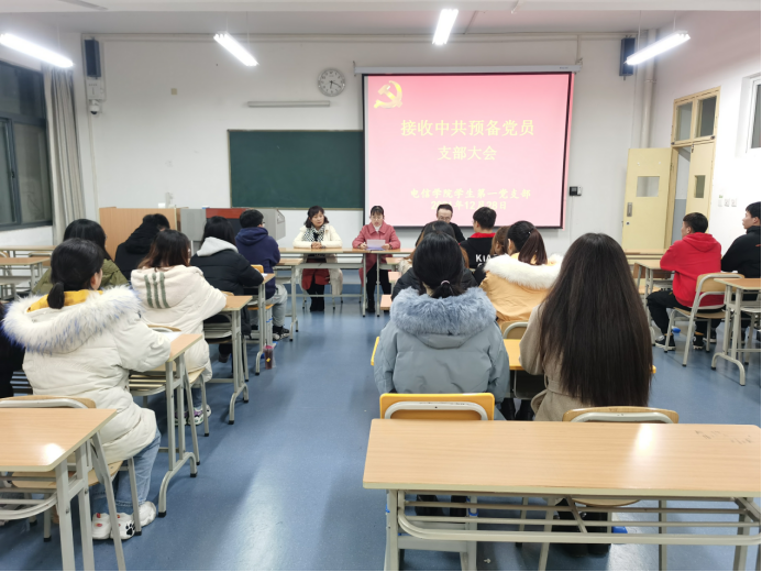 2021年12月28日下午,yl6809永利官网学生第一党支部在1320教室召开党员大会,接收中共预备党员研究讨论于昊等9位同志加入中国共产党事宜。yl6809永利官网学生第一党支部书记程晓梅,党总支组织委员成英丽,支部组织(纪检)委员张宇航,宣传(统战)委员王心悦,支部全体在校学生党员和本期发展对象参加了本次会议。会议由程晓梅主持。