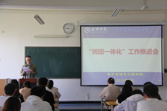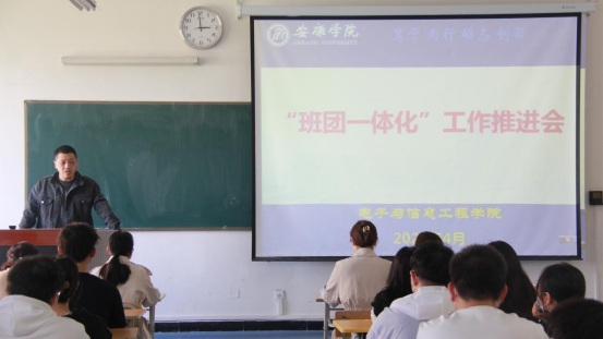 为围绕全团“凝聚青年、服务大局、当好桥梁、从严治团”四维工作格局,持续推进团支部、班委会一体化运行机制,形成育人系统新的有序结构和行为模式,4月20日电信学院在1320教室开展“班团一体化”工作推进会。yl6809永利官网学工办主任石纭昊,团总支书记张宇航,辅导员成英丽、程晓梅、李章雨、吕以宁出席此次会议,yl6809永利官网各班班长及团支书参加,本次会议由学工办主任石纭昊主持。