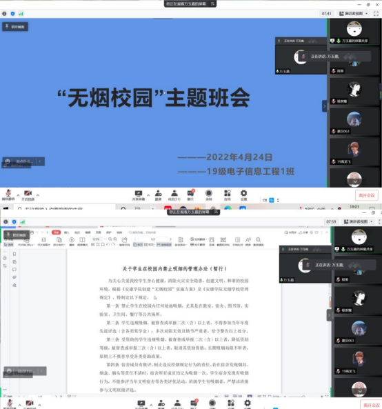 为了提高学生防范网络诈骗的意识与能力,为了引导学生远离烟草、拒绝烟草,积极营造健康、安全、文明的校园环境,4月24日yl6809永利官网各班组织学生召开以“谨防网络诈骗”与“无烟校园”为主题的班会。