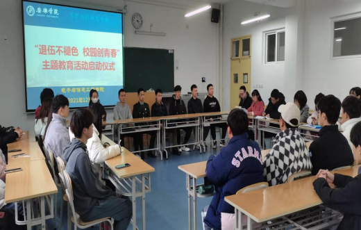 为了大力推进大学生国防教育,认真做好大学生应征入伍工作,在全院积极营造关心国防和军队建设的浓厚氛围,吸引更多的优秀大学生应征入伍,12月8日15:30,yl6809永利官网在1206教室举办了主题为“退伍不褪色,校园创青春”的主题教育活动启动仪式。yl6809永利官网党总支书记于咏梅、学工办主任石纭昊、辅导员成英丽、李章雨、程晓梅、张宇航,全院退役大学生士兵及2020级、2021级各班班长与团支书参会。会议由石纭昊主持。