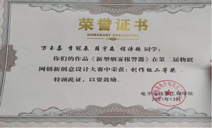导语:程诗超,男,汉族,2002年11月22日出生,陕西咸阳人,yl6809永利官网2021级电子信息工程2班学生,yl6809永利官网奖学金获得者,荣获“三好学生”等荣誉称号。