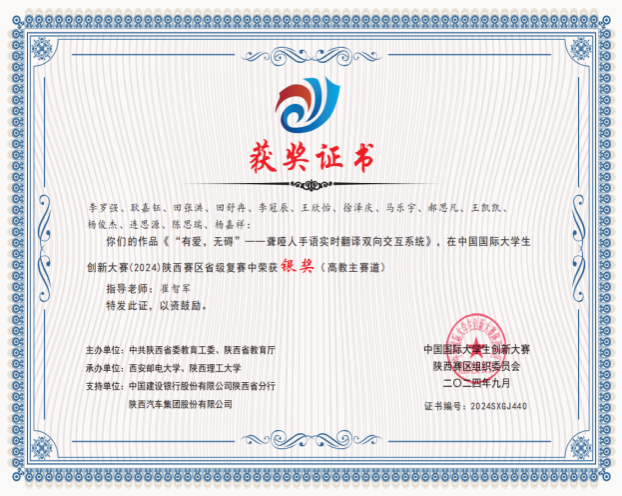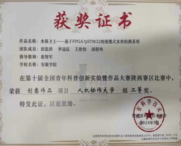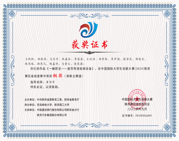 仅仅大一这一学年,田舒冉就凭借着自身的努力和团队的协作,收获了累累硕果:荣获 “2024 年全国大学生物联网设计竞赛 (华为杯) 西北赛区一等奖”、“中国大学生计算机设计大赛西北赛区二等奖”、“互联网 + 中国国际大学生创新大赛 (2024) 陕西赛区银奖”、“第十届全国青年科普创新实验暨作品大赛陕西赛区二等奖”、“第十二届‘挑战杯’陕汽集团陕西省大学生创业计划竞赛铜奖”、“互联网 + 中国国际大学生创新大赛 (2024) 陕西赛区铜奖”,并且积极参与了两项国家级大学生创新创业训练项目。这些闪耀的荣誉背后,凝聚着实验室全体成员无数个日夜的辛勤付出,那一个个通宵达旦的夜晚,是他们为梦想拼搏的见证。而这些宝贵的经历,也成为了田舒冉大学生活中最珍贵的财富,激励着她在未来的道路上继续奋勇前行。