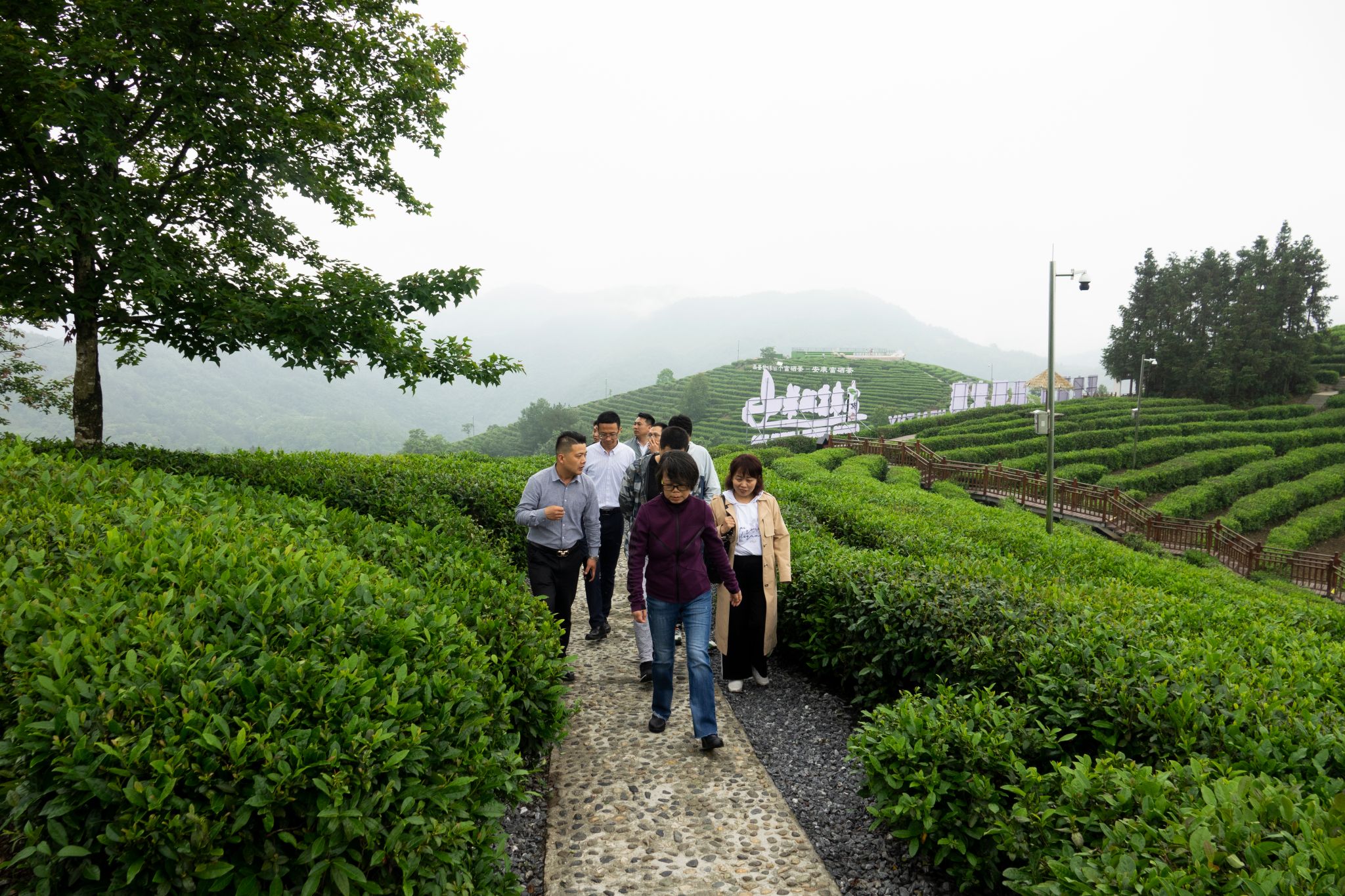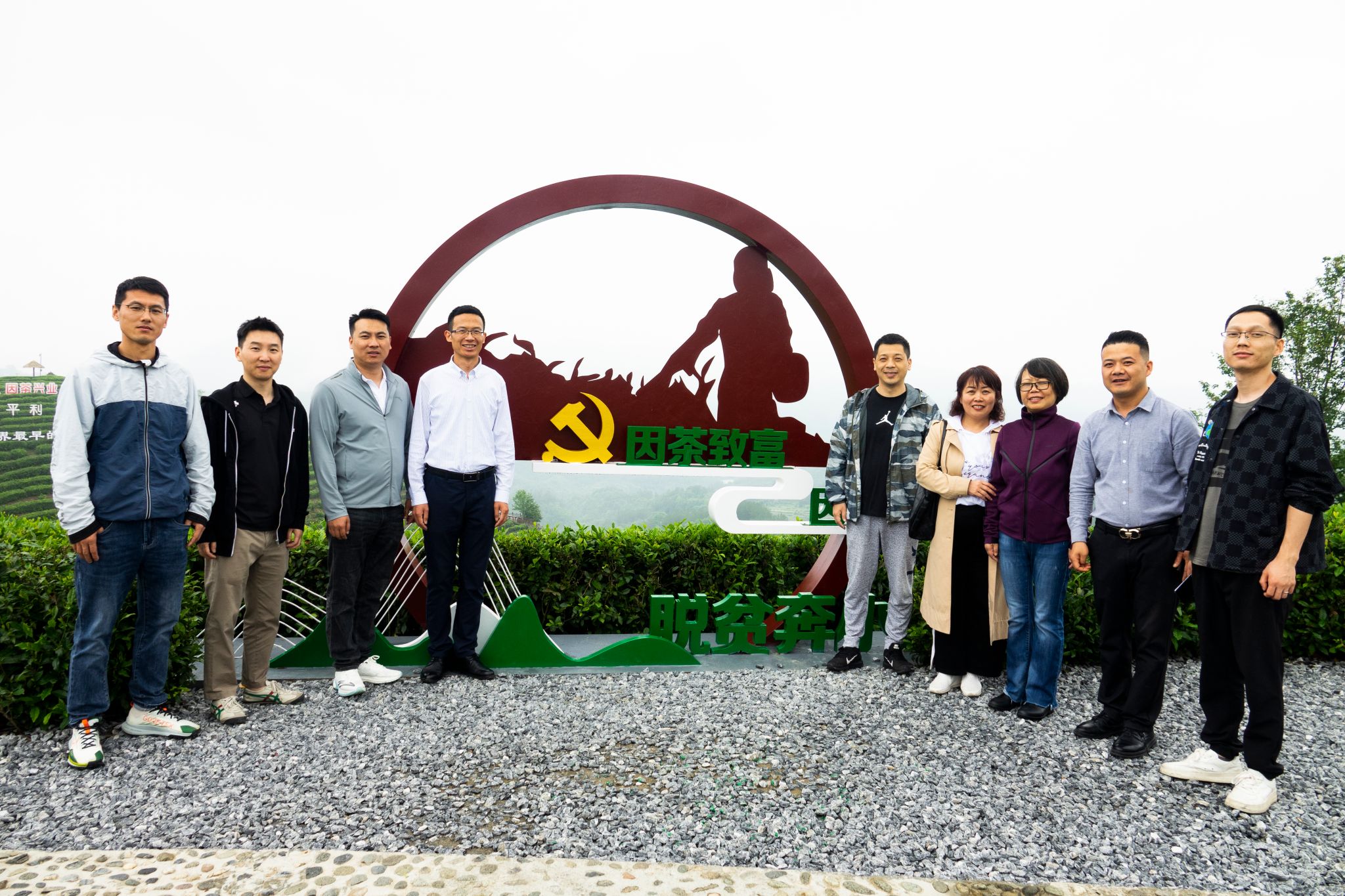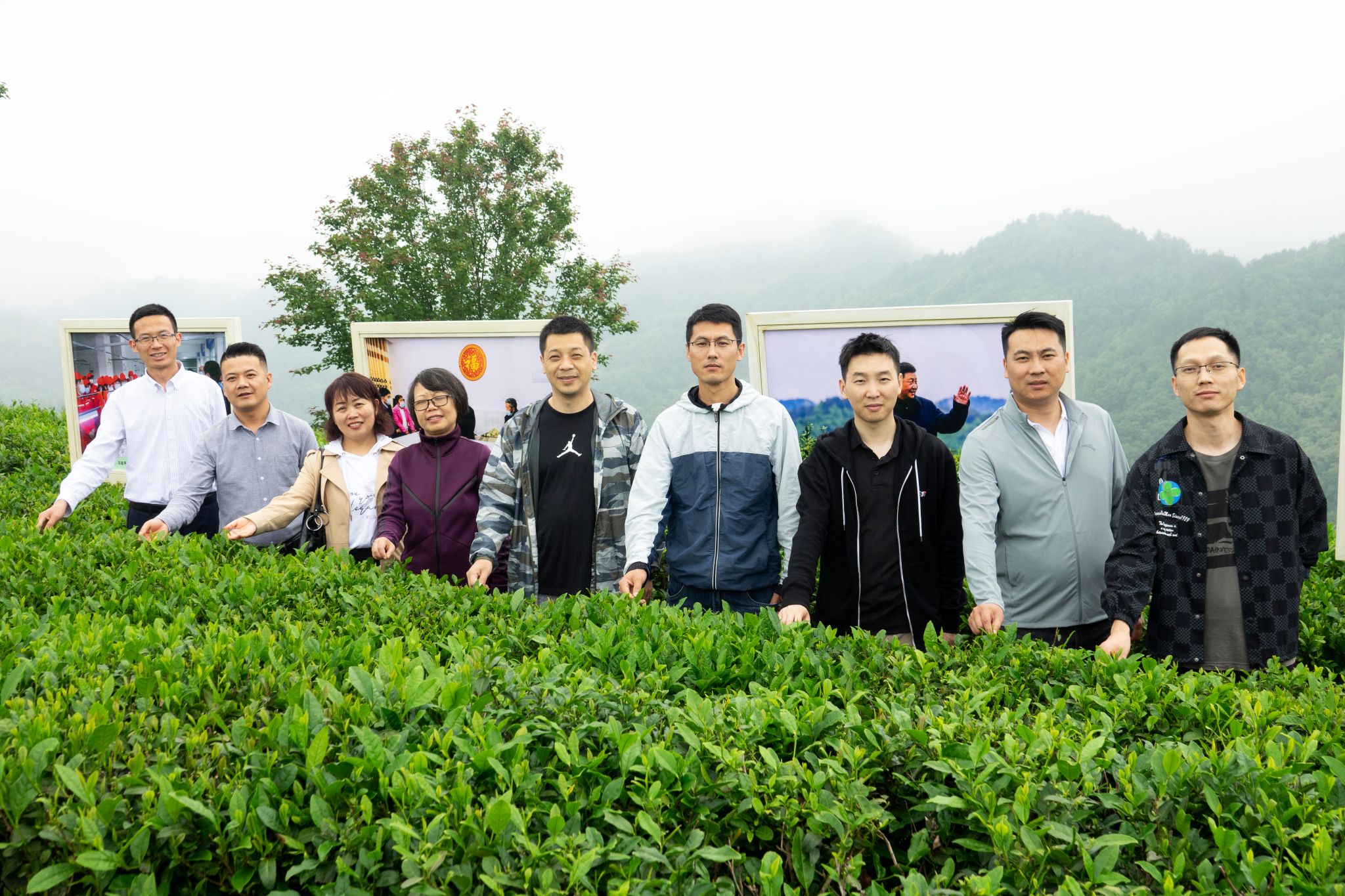 5月27日中午,雨后的平利县蒋家坪茶山,云蒸雾绕,犹如仙境。笼罩茶山的云雾还未散去,yl6809永利官网2013、2014、2016届校友孙小明、吉明超、寇强、净小刚、许赢政、姬一波等六人在学院党总支书记于咏梅、组织委员成英丽、学工办主任石纭昊的陪同下,来到这里。放眼望去,一排排修剪整齐的茶树、随处可见的游人、壮丽锦绣的青山,构成了一幅山乡巨变的喜人画面。大家在景区讲解员的带领下,沿着习近平总书记考察路线,参观了蒋家坪村女娲凤凰茶叶现代示范园,聆听了习近平总书记考察园区时同茶农们亲切交谈的故事。