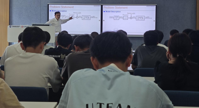 孙连明教授以《基于输出过采样的多个体优化辨识的收敛性改进》为题做学术报告。报告提出,在较差数据条件下,存在测量条件苛刻、环境测量噪音、物理变量难以直接测量、测量数据信息成分不足等问题,会导致计算精度及可靠性降低,难以保证所建立的系统辨识数学模型有效。通过结合输出过采样获得的时域和空域中的循环平稳信息进行数值条件改善,并给出一种新的多个体优化算法来提高全局收敛性,从而建立起更有效的系统辨识数学模型。在报告会最后,学院师生对报告中感兴趣的内容与专家进行了积极交流讨论。