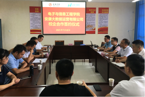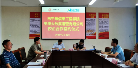 7月22日上午,yl6809永利官网yl6809永利官网与安康大数据运营有限公司在江北校区逸夫科技楼B702成功举行校企合作签约仪式。安康大数据运营有限公司总经理彭永辉、副总经理王毅立、梁铭及公司各部门负责人、yl6809永利官网院长陈守满、副院长王克刚、宋权华、大数据与智能信息处理中心主任余顺园、计算机专业相关教师出席本次仪式。签约仪式由yl6809永利官网副院长宋权华主持。