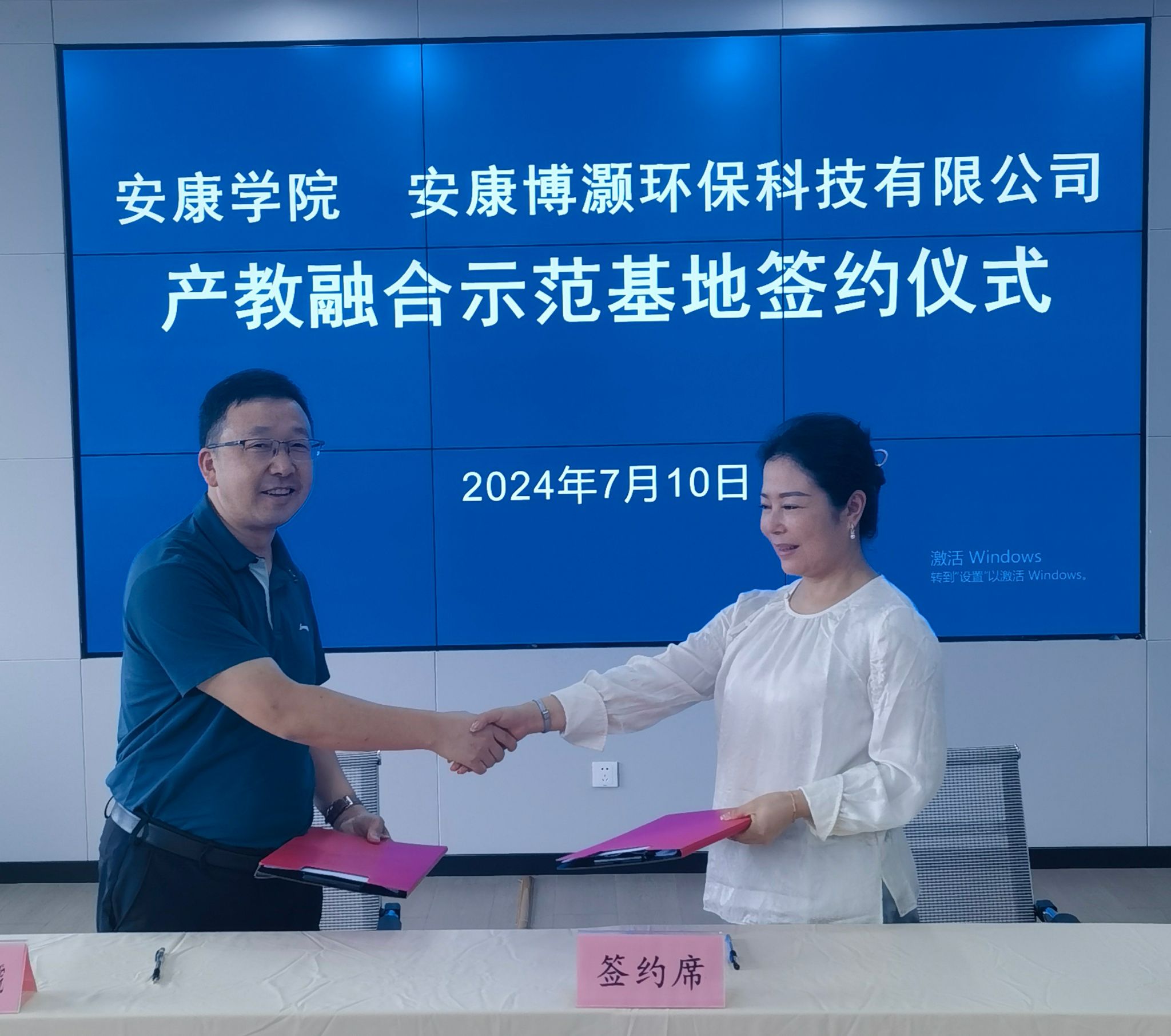 2024年7月10日,在安康博灏环保科技有限公司培训中心,yl6809永利官网与安康博灏环保科技有限公司产教融合签约仪式隆重举行,副院长王克刚、安康博灏环保科技有限公司董事长刘燕出席签约仪式。