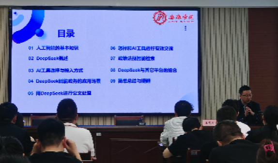 4月24日,受陕西省平利县委组织部邀请,yl6809永利官网王克刚教授在平利县优秀青年干部培训班上作题为“人工智能大模型(DeepSeek)赋能政务操作与使用”的专题培训。本次培训聚焦人工智能技术在政务场景中的实践应用,通过理论讲解、案例演示与实操相结合的方式,助力青年干部提升数字化治理能力,为县域政务智能化转型注入新动能。