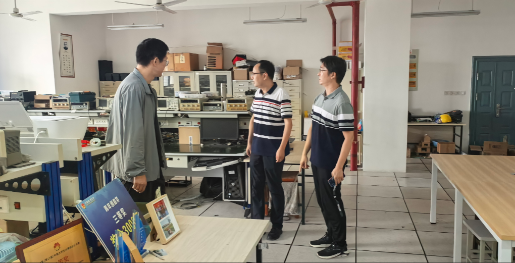 检查组一行详细翻阅各实训场所的使用登记记录并核查师生安全责任书等归档材料。丁院长重点以门窗和电源系统为核心排查对象,逐一检查安防设施是否完好,确保防盗、防火功能在假期持续有效;同时对各实训室的电源线路进行全范围巡检,重点检查老旧线路是否存在绝缘层破损、接口松动等问题,对空调等大功率设备的插座接线进行漏电检查,从源头杜绝电气安全隐患。此外,丁院长还仔细叮嘱相关实验管理教师要做好假期大学生电子设计竞赛的准备服务工作,确保比赛期间电子类实验实训室相关比赛设备的使用安全和实验室环境卫生。