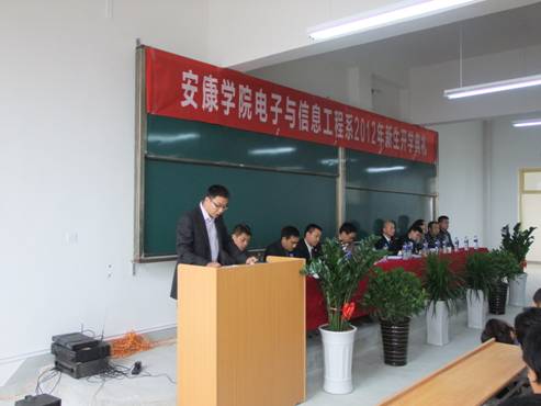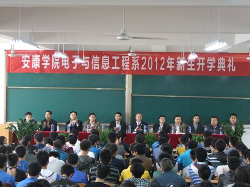 10月11日,电信系2012级新生开学典礼在江北校区1303教室隆重举行,2012级453名新生,系主任张东红、系总支书记李红兵、教学副主任陈守满、科研副主任王庆春、系办学办主任、教研室主任、教师代表出席了典礼。大会由系总支书记李红兵主持。