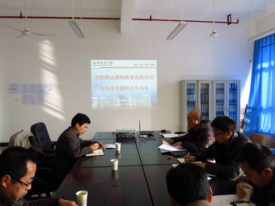 党总支书记李红兵首先代表系领导班子报告了班子遵守党的政治纪律、贯彻中央八项规定和学校实施意见、转变作风等方面的情况、原因分析、努力方向以及整改落实、建章立制的思路和措施。接着班子成员对电信系领导班子的班子作风情况开展批评,班子成员按照“照镜子、正衣冠、洗洗澡、治治病”总要求,从遵守党的政治纪律和贯彻中央八项规定的情况,班子在办学理念、学科建设、内部管理、服务师生等方面反映查摆出的“四风”方面存在的主要问题等方面积极开展批评与自我批评。然后,班子成员李红兵、张东红、陈守满、王庆春逐一汇报了个人对照检查材料,班子成员本着对自己、对同志、对班子、对学校事业、对党高度负责的精神,紧密联系思想实际、岗位职责和工作实际,紧密结合征求到的意见和建议,敢于揭短亮丑,不回避、不掩饰,深入剖析自身存在的问题。指出了以后努力的方向,查找问题针对性强,剖析的深刻。