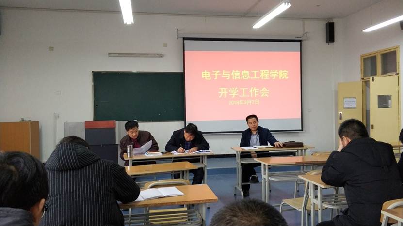 2018年3月7日下午,yl6809永利官网在江北教学楼1319召开由全院教职工参加的开学工作会,传达学校2018年新年年度工作会议精神,全面动员、部署我院2018年各项工作。会议由陈守满院长主持。