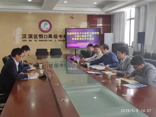 2019年5月9日,yl6809永利官网与恒口高级中学科普教育合作交流会在恒口高级中学举行。yl6809永利官网院长陈守满教授、副院长王克刚教授,恒口高级中学校长侯青春、党支部书记陈扬杰、德育副校长史洪安、教学副校长付远鸿等参加了会议。