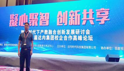 2019年第十三届达内集团校企合作高峰论坛8月10日在湖南省长沙市举办,我院陈守满教授应邀参加该论坛。本次论坛的主题为“凝心聚智,创新共享”,来自教育部、科研机构、高等院校、知名企业多方领域的权威专家学者与参会208所院校504位院校领导分享前沿观点,共享实践经验,话题聚焦在智能新时代下深化产教融合建设思路与成功经验、智能时代下的构建终身学习体系的探索与实践等高校关注的热点议题,各方专家一一深度探讨与交流,共话智能时代产教融合的变革与机遇。本次会议三大亮点:高强时代亮相、达内与百度就人工智能技术推广达成深度合作、智慧数链财经教育方案分享、共建人工智能学院,打通产教融合赋能高校的解决方案。