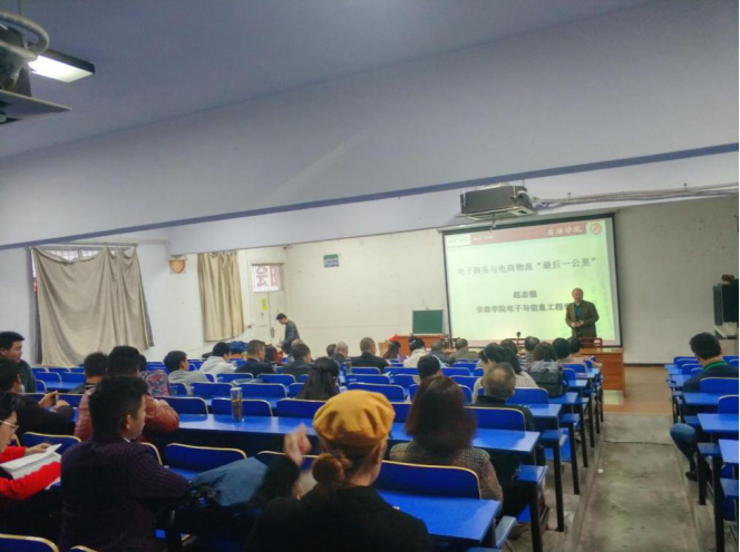 信管系主任赵志强老师就《电子商务与电商物流“最后一公里”》开展专题讲座。赵老师通过结合身边的案例,对什么是电子商务、电子商务的基本框架结构、电子商务有哪些类型、电子商务与传统商务相比的优势有哪些进行了深入浅出的讲解,结合我国电子商务以及农产品电子商务发展情况基本数据,针对白河现有产品电子商务模式进行了分析,提出了白河电子商务发展的一些商业模式及理念。最后,针对目前电子商务物流“最后一公里”存在的问题,结合白河当地的实际情况,提出了四种解决电商物流“最后一公里”问题的切实方案。