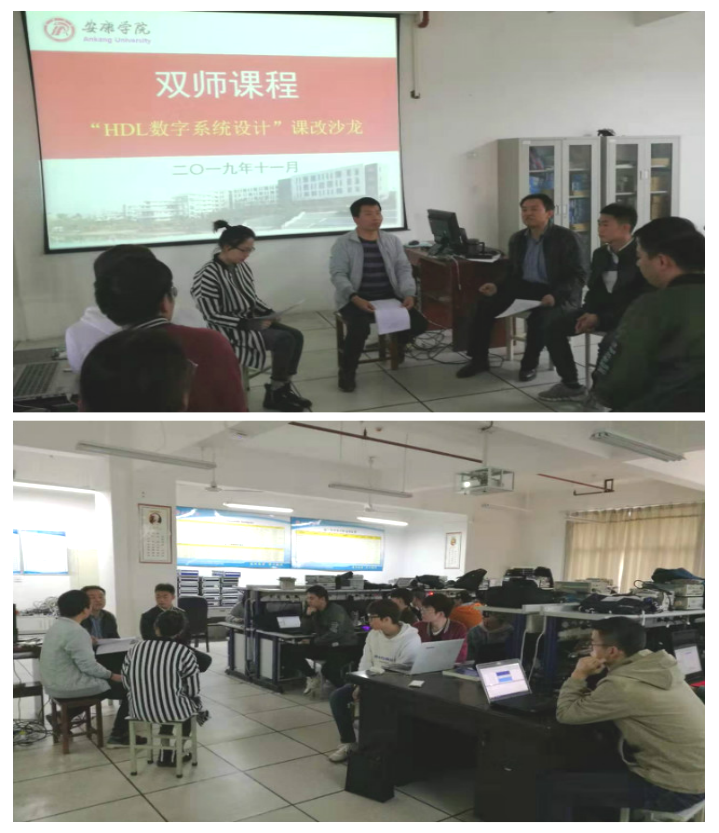 为了进一步推进yl6809永利官网产教融合、协同育人人才培养模式的构建,不断提高应用型人才培养质量。2019年11月8日,yl6809永利官网电子工程系在江北校区逸夫科技楼A401实验室,围绕学校首批立项的“双师课程”《HDL数字系统设计》建设成效,开展了一次课改沙龙活动。yl6809永利官网教学副院长王庆春、双师课程合作企业授课老师贺磊工程师、电子工程系相关教师以及电子信息工程专业2017级学生参加了本次课改沙龙活动。