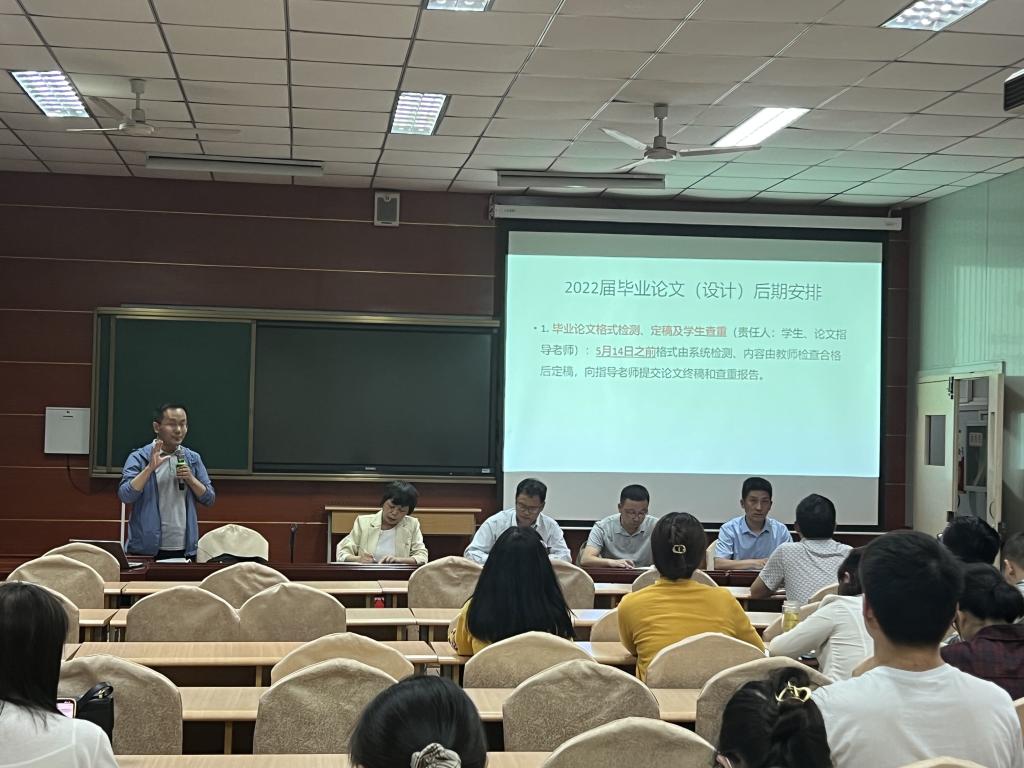 副院长宋权华首先对2022届毕业论文(设计)后期安排做详细说明,强调在时间安排节点指导毕业班学生顺利完成毕业论文。其次,鼓励具有高级职称的教师带领青年教师积极申报2022年省级一流课程、课程思政教学项目、校级教育教学改革研究项目,最后强调切实落实好2022级人才培养方案和大纲修订工作。