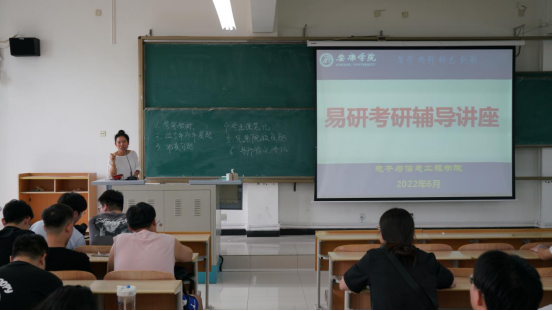 为进一步推进电信学院学生对考研深入了解,科学高效备考,6月1日下午yl6809永利官网在1304教室召开了“易研考研辅导讲座”,此次讲座由易研教育胡老师主讲,2019级考研学生参加。