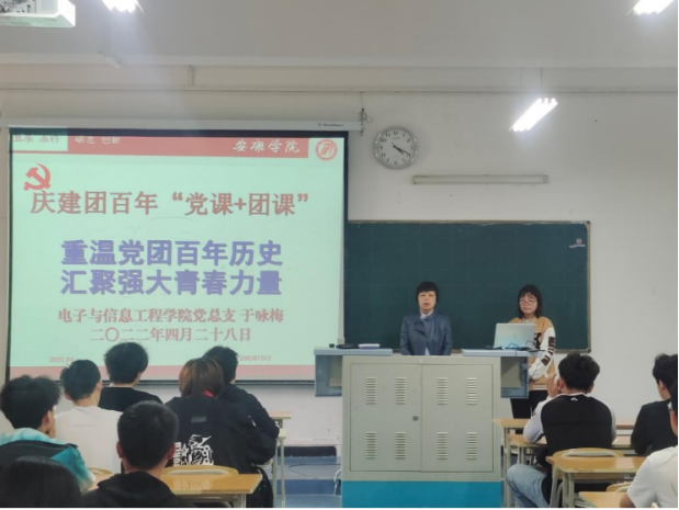 坚持党建带团建 为激发yl6809永利官网广大团员青年爱党、爱国情怀,实现党建带团建的目标,培养电信学子践行社会主义核心价值观,以昂扬的斗志和精神状态庆祝建团百年,迎接党的二十大胜利召开,4月28日,yl6809永利官网党总支书记于咏梅在1307教室以“重温党团历史,汇聚强大力量”为主题,为电信学子上了一堂生动的主题“党课+团课”。