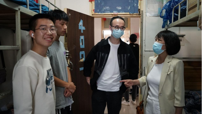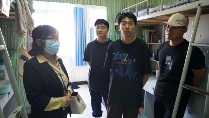 2022级辅导员成英丽、张宇航通过走访宿舍,深入了解新生的基本情况,提醒新生要增强安全防范意识,确保人身财物安全,搞好文明寝室建设,营造良好的住宿与学习环境。同时希望同学们高度重视疫情防控工作,按时完成健康打卡;提醒大家要尽快转变角色,熟悉新环境,以积极的心态和良好的面貌迎接大学校园生活。