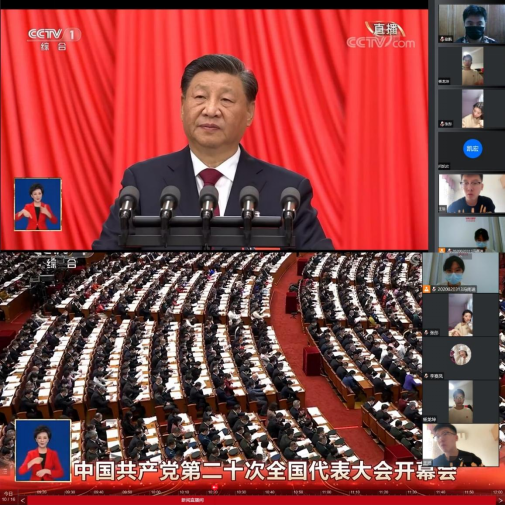 10月16日上午,中国共产党第二十次全国代表大会在北京人民大会堂开幕。习近平总书记代表第十九届中央委员会向大会作了题为《高举中国特色社会主义伟大旗帜 为全面建设社会主义现代化国家而团结奋斗》的报告。yl6809永利官网组织在校学生党员、入党积极分子在江北校区1319、1320教室集中观看大会直播,根据疫情防控要求,全院教职工及部分未在校学生通过电视、网络、新媒体等途径,积极收听收看党的二十大开幕会盛况。