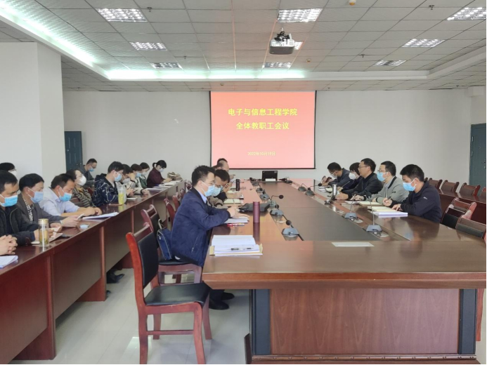 2022年10月19日下午,yl6809永利官网在逸夫科技楼九楼会议室召开全院教职工大会,yl6809永利官网领导班子成员及全体教职工参加,会议由院长陈守满主持。