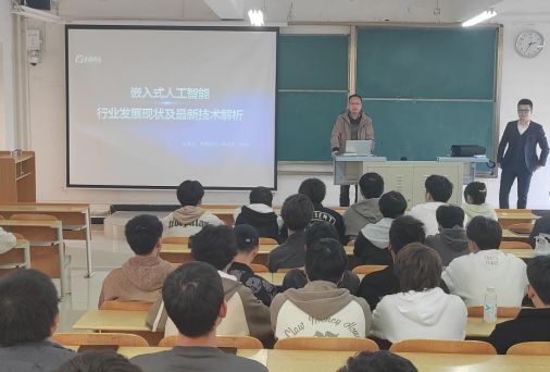 2023年03月08日,yl6809永利官网电子工程系在江北校区一号教学楼1316教室举办嵌入式人工智能行业发展现状及最新技术解析专题讲座。本次讲座由华清远见教育集团项目经理、职业规划讲师张治西老师主讲,电子工程系相关老师以及电子信息工程专业2022级80余名学生参加了本次讲座。