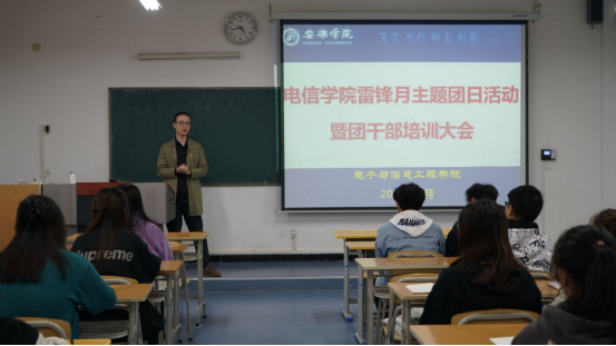 为积极培育和践行社会主义核心价值观,传承和弘扬雷锋精神,致敬时代先锋,引领团组织干部践行雷锋精神及奉献、友爱、互助、进步的志愿精神,yl6809永利官网团总支于3月22日在江北校区1319教室开展以“传承雷锋精神 做新时代青年”为主题的团日活动暨团干部培训大会。学院团总支书记张宇航、副书记任柯伊、任金笑、组织部部长陈新茹、摄影部部长沈晓轩、编辑部部长李少博、以及各班团支书参加本次会议,本次会议由团总支副书记任金笑主持。