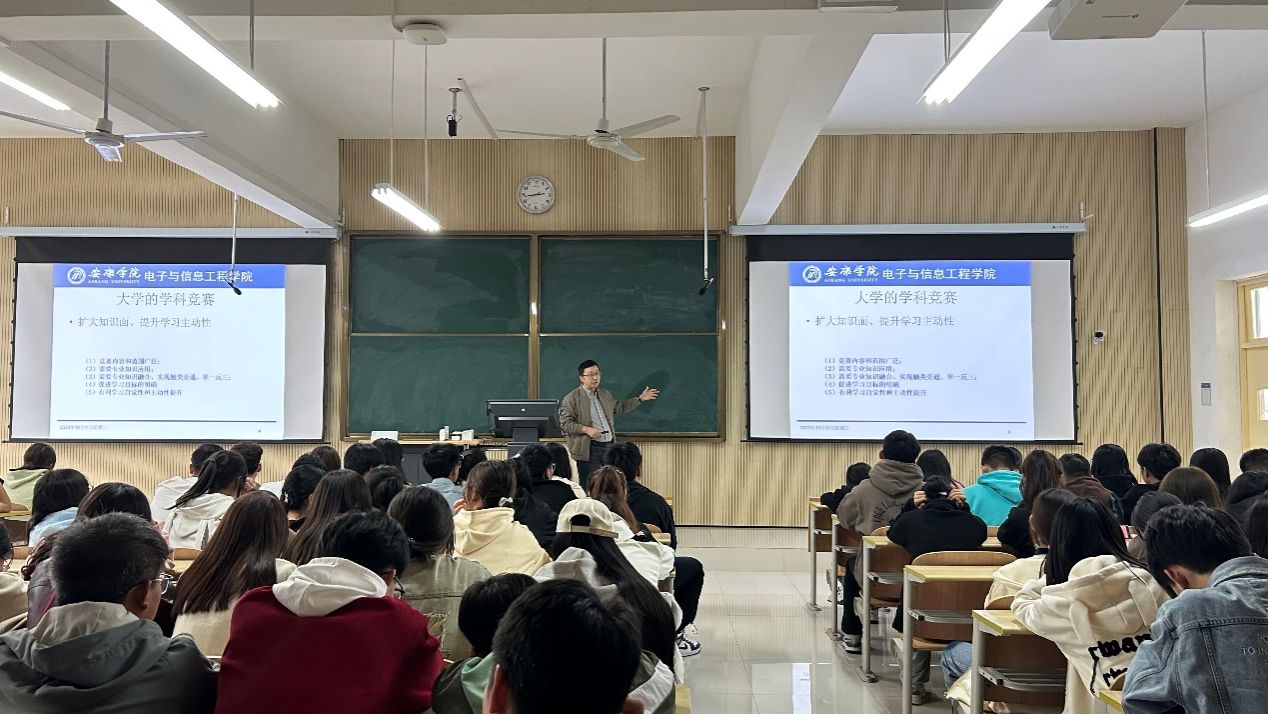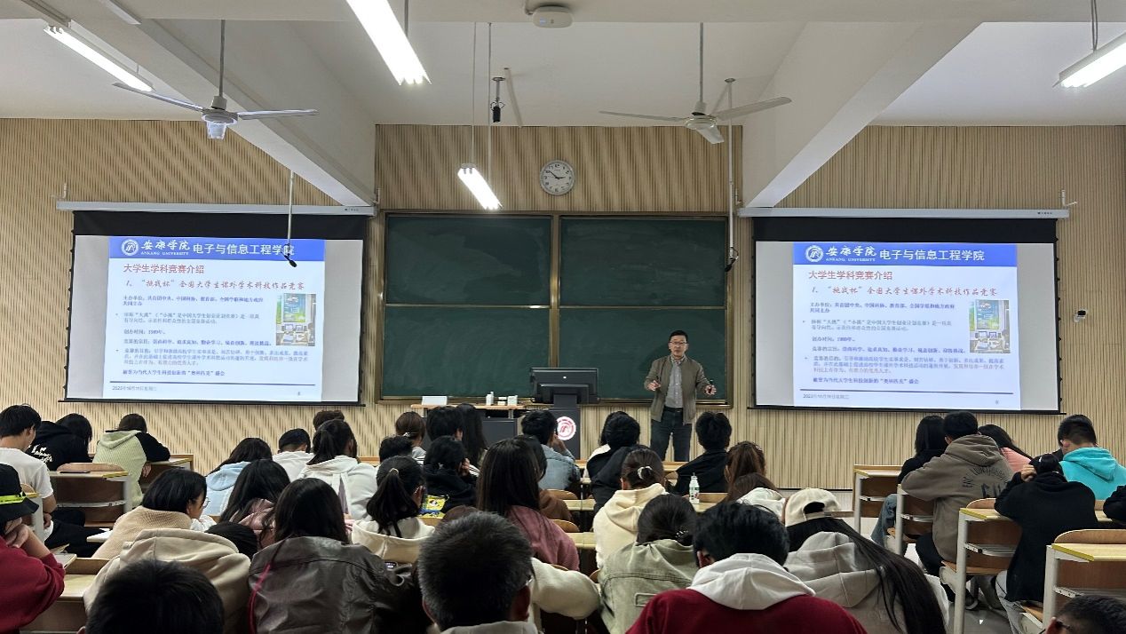 王克刚介绍了八个大学生学科竞赛,并展示了部分学长学姐们在以往竞赛中取得的优秀成绩,激励新生积极参与学科竞赛。