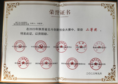 近日,2023年陕西省北斗创新创业大赛比赛结果揭晓,yl6809永利官网教师刘星亮的《基于北斗的茶叶病虫害定位联防系统》荣获本次大赛二等奖,学生李冠辰的《基于北斗定位的导盲小车控制系统》荣获本次大赛最具创意奖。
