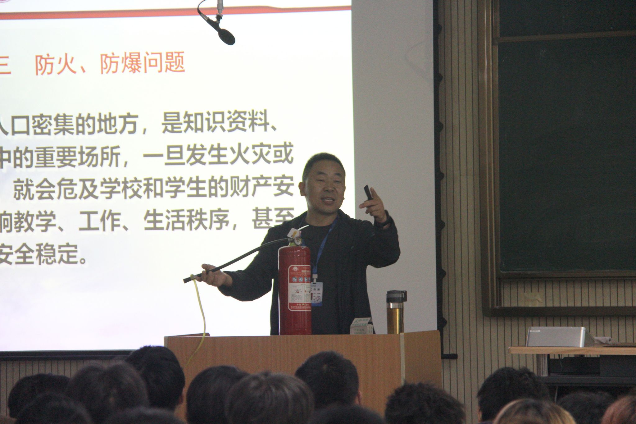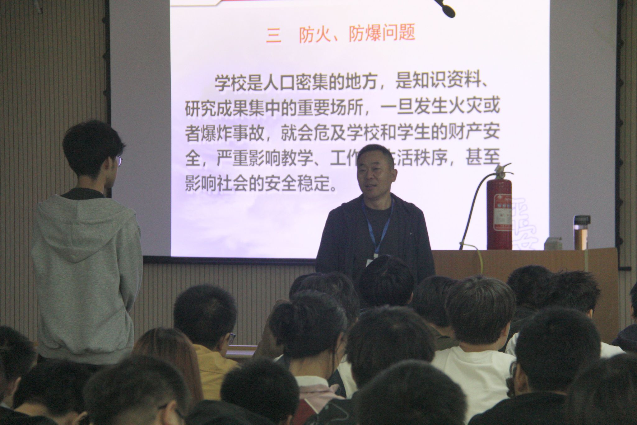 为保障讲座有警示,有效果。保卫处处长王开忠精心安排讲座内容,让yl6809永利官网每名学生都完全掌握了基本的安全知识和技能。