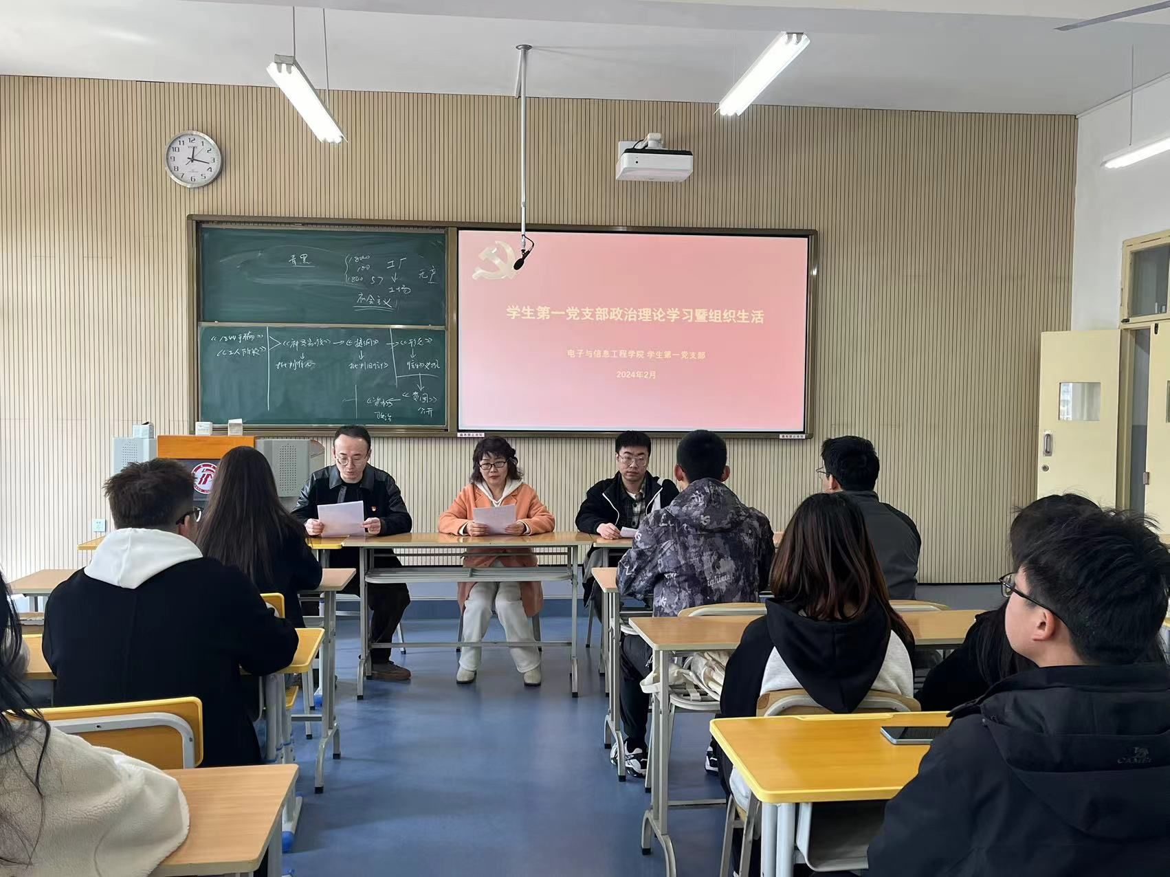为深入贯彻落实习近平总书记对于新时代新青年的殷切寄语,让广大党员和青年学生更好地认识和把握新时代的发展机遇,增强责任感和使命感,积极投身社会实践,为实现中华民族伟大复兴的中国梦贡献自己的力量,2024年2月28日,yl6809永利官网学生第一党支部采用线上线下相结合的形式在江北校区1319教室开展了政治理论学习。会议由第一支部代理书记翟子轩主持,学生第一党支部全体党员参加活动。