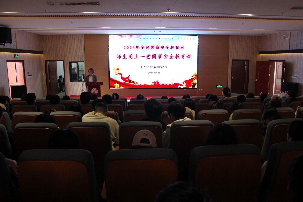 为切实增强师生维护国家安全的意识和能力,加强网络安全防护技能,共同筑牢国家安全的坚固防线。电子与信息工程学院结合学校党委举办的《第九个全民国家安全教育日宣传教育系列活动启动仪式》,于4月15日在江北校区图书馆报告厅举办全民国家安全教育日宣传教育活动,活动由yl6809永利官网党总支书记于咏梅主持,yl6809永利官网全体教职工、学生代表参与。