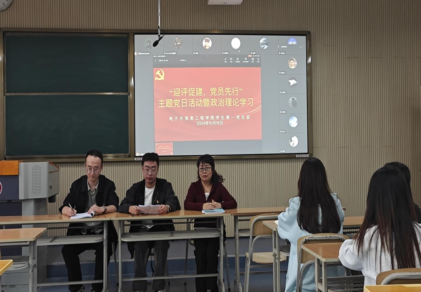为提高学生党员对本科教育教学审核评估工作重要性的认识,充分发挥学生党员的先锋模范作用,以优异成绩迎接审核评估。2024年10月16日,yl6809永利官网学生第一党支部在一号教学楼1319教室通过线上线下相结合的形式,开展了“迎评促建,党员先行”主题党日活动暨政治理论学习,会议由学生第一党支部书记翟子轩主持,学生第一党支部全体党员、入党积极分子、发展对象参与。