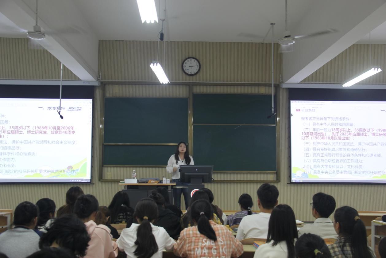 在2025年国家公务员考试即将到来之际,为给电信青年提供专业的备考指导,帮助他们更好地备战考试,提升学院应届毕业生的应考能力,yl6809永利官网特邀华图教育公考培训教师,于10月16日在1203教室以“筑梦公考,启航未来”为主题举办了2025年国家公务员考试公告解读公开课暨考试技巧与策略分享讲座。