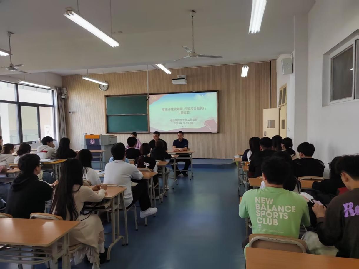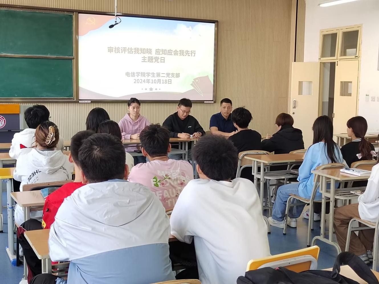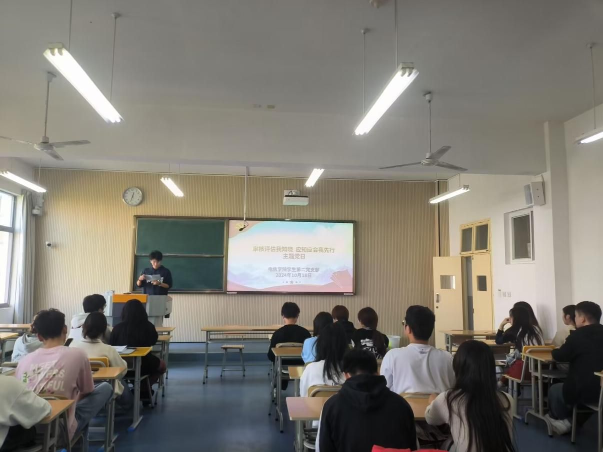 为积极开展迎评促建工作,全员全环节全力推进审核评估,落实立德树人根本任务,营造全院上下“人人关心评估、人人了解评估、人人参与评估”的浓厚氛围。2024年10月18日,yl6809永利官网学生第二党支部在一号教学楼1320教室开展了“审核评估我知晓,应知应会我先行”主题党日活动暨政治理论学习。会议由学生第二党支部书记贾金兵主持,学生第二党支部全体党员、入党积极分子、发展对象参与。