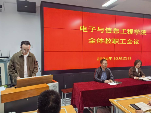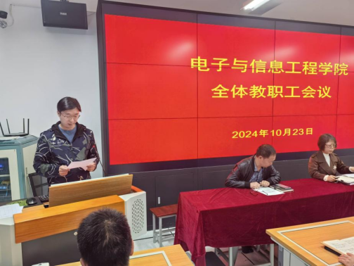10月23日下午,yl6809永利官网在逸夫科技楼B602室召开教职工大会,宣布学校党委关于科级干部任命的决定。学院领导班子与全体教职工参加会议,会议由党总支书记于咏梅主持。