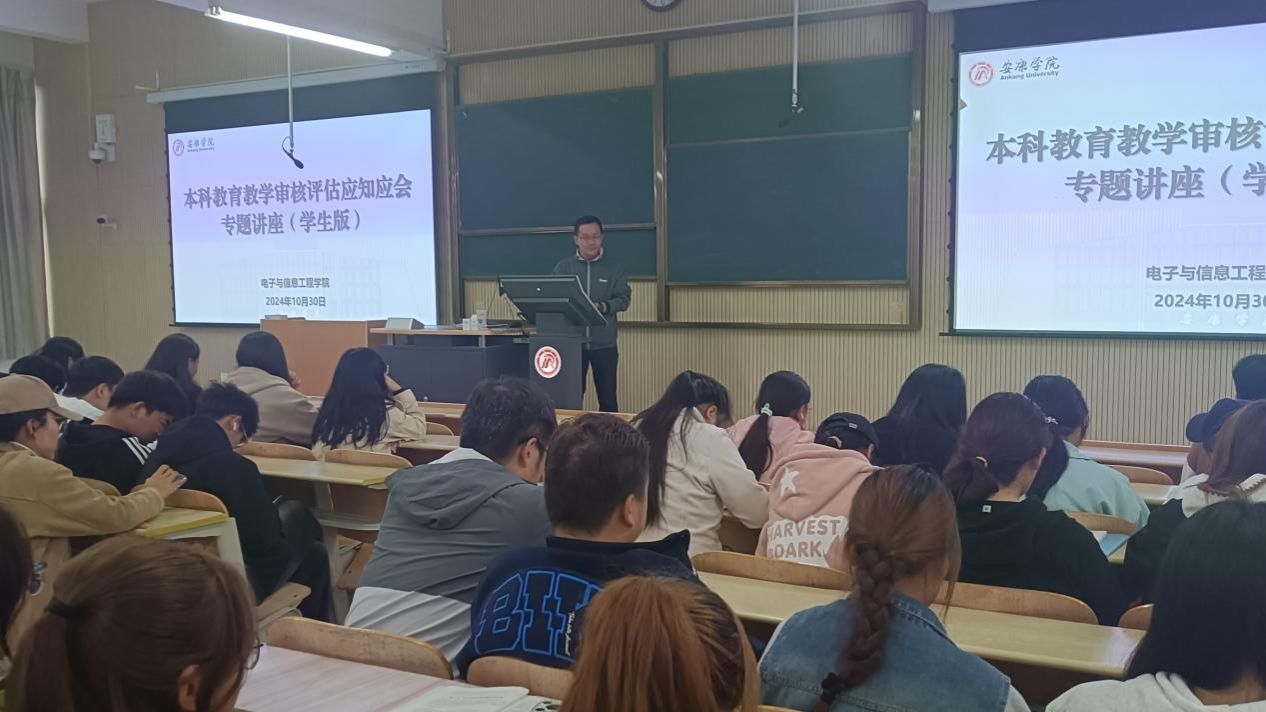 为全面落实本科教育教学审核评估工作要求,营造浓厚的迎评促建氛围,进一步强化主人翁意识和责任担当。2024年10月30日,yl6809永利官网副院长宋权华做了《yl6809永利官网本科教育教学审核评估应知应会手册(学生版)》宣讲暨yl6809永利官网2024级新生入学教育,yl6809永利官网2024级全体新生参与。