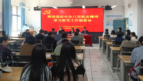 3月25日,yl6809永利官网召开党的建设工作会议,专题研究部署深入贯彻中央八项规定精神学习教育工作。学院班子成员、党总支委员、科级干部、各党支部书记等参加会议。3月26日,学院召开深入贯彻中央八项规定精神学习教育工作部署会,全体党员参加会议。