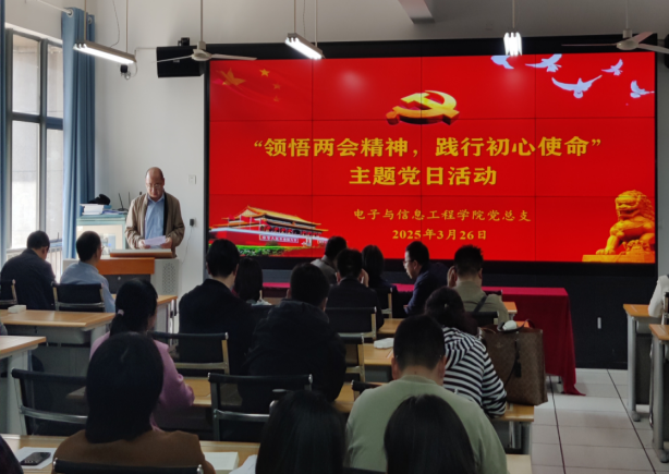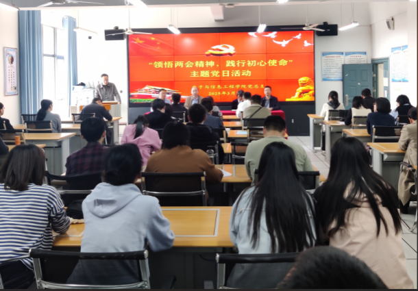 为深入贯彻落实全国两会精神,提升全体党员的政治素养和使命感,同时为扎实推进“五联五做”工作的开展,加强教工党支部与学生党支部的联系,3月26日下午,yl6809永利官网教工党支部和学生党支部在逸夫科技楼B602开展“领悟两会精神,践行初心使命”主题党日活动,本次活动由丁礼磊同志主持。