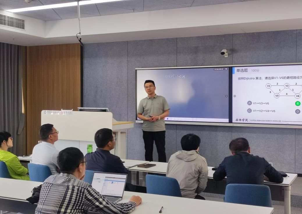 参赛教师严格遵循课堂教学创新大赛的评审标准,精心设计教学展示环节。每位教师选取课程中的关键知识点,从课前回顾、新课导入、知识讲解、课程小结、作业布置等环节进行了20分钟左右的现场教学展示和10分钟左右的课程创新成果汇报。每位教师展示结束后,5位评委均根据该教师的授课特色肯定了亮点优势,同时也从教学环节设计、教学目标、教学内容、教学方法、语言表达、师生互动、智慧教学工具的使用、教学板书、教师教态等方面进行了细致点评,针对不足之处给出了中肯的改进建议。