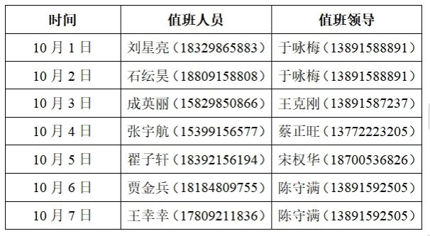根据学校安排,yl6809永利官网2024年国庆节假期值班安排及相关工作要求如下: